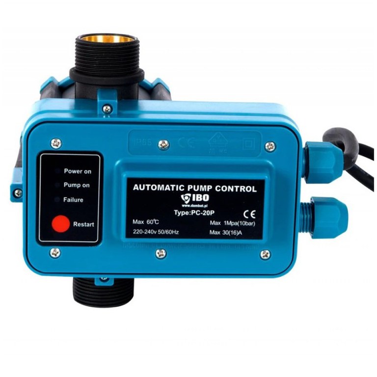 Caracteristici tehnice Presostat electronic IBO Dambat PC-20P, 1 1/4":- tensiune de alimentare :~220/240V- grad de protectie - IP 65- temperatura maxima a apei - 40°C- presiune de pornire 1,5 - 3 bar- presiune max. admisibila a sistemului - 10 bar- curent max. - 16ACaracteristici:- stut de aspirare / refulare 1 1/4”- supapa de retentie incorporata- protectie impotriva functionarii la uscat- intrerupator manual RESET- dioda de semnalizare a alimentarii POWER- dioda de semnalizare a functionarii pompei ON- dioda de semnalizare a defectiunii FAILUREFabricat in Polonia.Descriere Presostat electronic IBO Dambat PC-20P, 1 1/4, 10 bar, 2,2 kW:Controlerul PC-20P controleaza functionarea pompelor de suprafata si a celor submersibile.Inlocuieste presostatul si rezervorul de hidrofor. Deschiderea robinetului transmite un semnal catre automatul PC-10P, care porneste pompa.Inchiderea robinetului determina PC-10P sa opreasca pompa.Spre deosebire de celelalte, automatul poate functiona cu pompe monofazate cu o putere de pana la 1500W, a caror consum de curent in timpul functionarii nu depaseste 16 A.Dispozitivul are functie de protectie impotriva functionarii la uscat.Cand putul ramane fara apa, dispozitivul va opri pompa. PC-20P a fost echipat cu stuturi cu diametru de 1 1/4”.Automatul este echipat cu un cablu cu stecher lung de 1 m. putul ramane fara apa, dispozitivul va opri pompa. PC-20P a fost echipat cu stuturi cu diametru de 1 1/4”.Automatul este echipat cu un cablu cu stecher lu