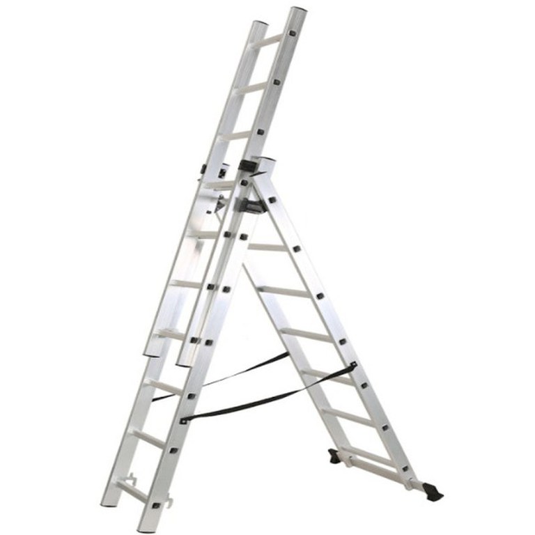 Scara speciala universala cu 3 tronsoaneMarginile antiaderente permit scarii o stabilitate crescuta.Inaltimea maxima de lucru, adica scara + om cu mana ridicata, este de 4.8 mInaltimea maxima la care poate pune piciorul omul care lucreaza este 2.8-3 metriieste recomandata pentru asezarea pe trepte in sedii firme, depozite, locuinte, curti.Caracteristici:Inaltime inchisa: 189cmInaltime deschisa: 324cm /486cmNivele scara: 3Trepte scara: 7Greutate: 9.8 kgGreutate Suportata: 150 kg