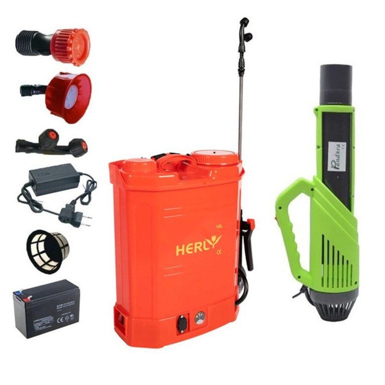 Pompa stropit electrica cu acumulator 16 litri, vermorel electric, Herly + atomizor portabil 80WPompa stropit electrica cu acumulator 16 litri, vermorel electric, HerlyPompa de stropit cu acumulator 16L HERLY este un produs eficient si usor de utilizat pentru lucrari de pulverizare a apei sau diverse substante chimice diluate in apa, cum ar fi: • pesticide (erbicide, fungicide, insecticide, acaricide; • ingrasaminte lichide pentru plante, flori, arbusti(biostimulatoare, fertilizante, aport de calciu, fier, zinc, potasiu) conservanti de gradina, etc. • apa curata pentru curatarea usoara a suprafetelor si a geamurilor; • apa de ploaie pentru stropirea plantelor in gospodarii; • ceara auto sau substante similare.Pompa de stropit cu acumulator 16L HERLY are urmatoarele caracteristici: • Design ergonomic pentru o manipulare usoara si un plus de confort; • Harnasament tip rucsac ergonomic pentru o utilizare comoda, cu efort minim si fara suprasolicitarea coloanei vertebrare. Curelele sunt reglabile si se elibereaza rapid din zonele de prindere; • Zona de contact cu spatele utilizatorului beneficiaza de o protectie speciala moa