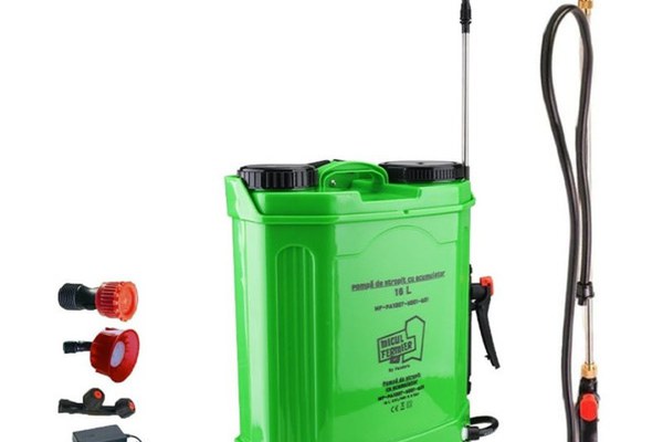 Pompa de stropit cu acumulator, Micul Fermier 10L este potrivita pentru pulverizarea de solutii apoase care contin:pesticide (erbicide, fungicide, insecticide, acaricide) pentru combaterea buruienilor, bolilor si daunatorilor.ingrasaminte lichide (biostimulatoare, fertilizante,aport de calciu, fier, zinc, potasiu) pentru ingrijirea plantelor, florilor, arbustilor.detergenti pentru curatarea usoara a unor suprafete sau geamurilor.apa de ploaie pentru udari.substante pentru dezinsectie si dezinfectie.Necesare in gospodarii, gradini de legume, livezi de pomi fructiferi, vii, suprafete agricole, grajdurile de pasari sau animale.Nu este permisa utilizarea pompei pentru pulverizarea de:substante chimice agresive din clase industriale;substante explozive;solventi, substante caustice cu autoincalzire;substante corozive;agenti de pulverizare care nu sunt aprobati la comercializare.lucrari profesionale in spatii publice, parcuri, stadioane sau silvicultura.Specificatii:Capacitate Acumulator: 8AhDebit lichid pulverizat: 2.9L/minDimensiune: 33.5x17.5x40.5 cmGreutata bruta: 4.6 kgGreutate: 4.1 kgLungime furtun: 1.2mLungime lance: 77cmLungime tija telescopica: 45-77cmMaterial rezervor: PPPresiune maxima de lucru: