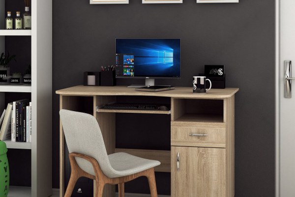 Dimensiuni: Lungime 115 x Adancime 60 x Inaltime 82cm Polita tastatura : lungime 50cm Corp cu 1 usa + 1 sertar : lungime 35cm Corp pentru unitate : lungime 25cm Nuante: Cires Caracteristici: Polita glisanta pentru tastatura 1 sertar + 2 rafturi...