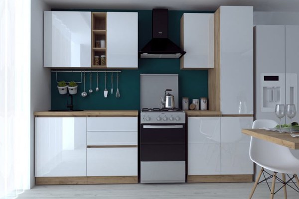 Bucatarie Chelsea Stejar K003 Alb 200x60x215 cm