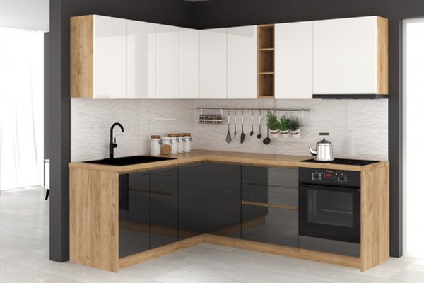 Set de mobilier pentru bucătărie, realizat din PAL melaminat și MDF lucios, cu design modern și configurație pe colț, conceput pentru organizare eficientă și utilizare practică a spațiului. Dimensiuni Caracteristică Dimensiune Dimensiune...