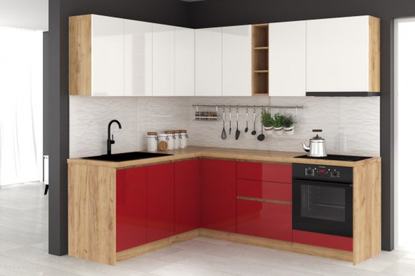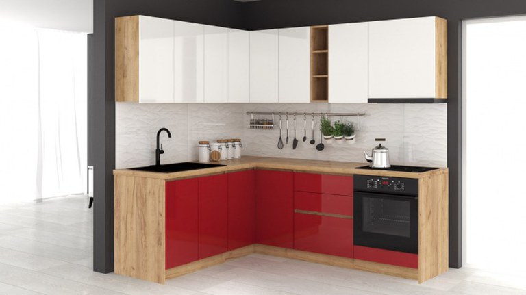 Bucatarie colt Chelsea V1 Alb Rosu