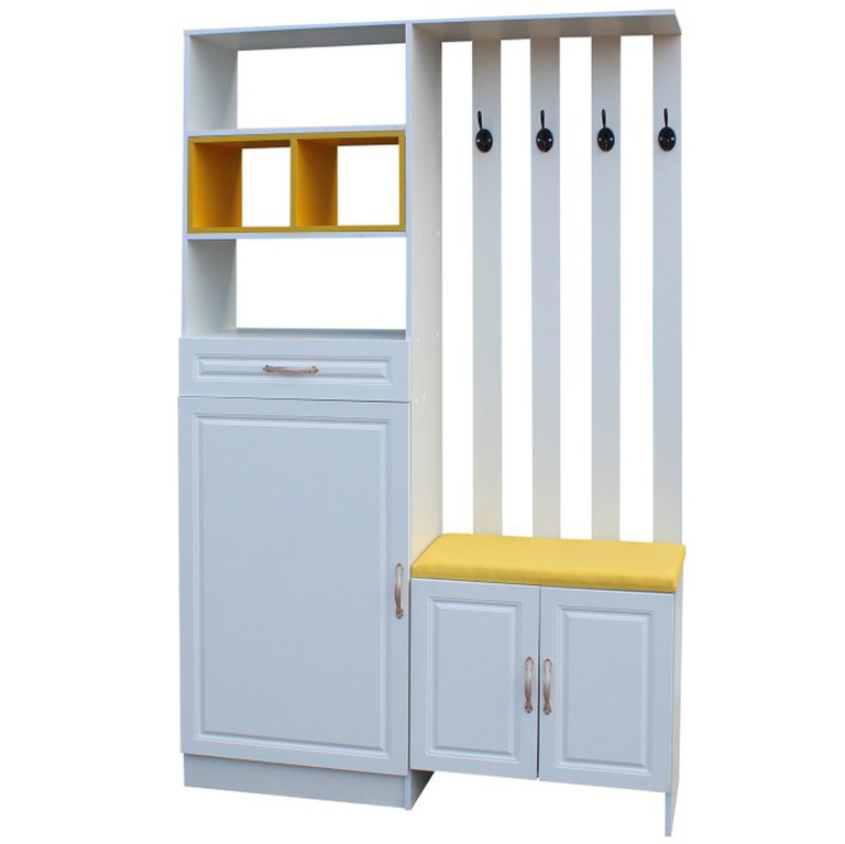 Set de mobilier pentru hol, realizat din PAL melaminat și MDF infoliat, cu design modern și structură funcțională. Ideal pentru organizarea eficientă a spațiului de intrare. Material Componentă Specificație Corp PAL melaminat Alb Galben...