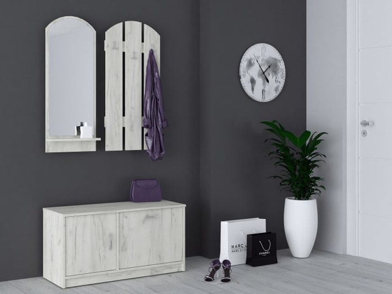 Dimensiuni: Lungime 100 x Adancime 36 x Inaltime 150 cm Material: Corp Front: Pal melaminat K001 3 agatatori Polita Oglinda Produsul se livreaza in pachete, cu schita de montaj si feroneria necesara pentru asamblare ! CARACTERISTICI GENERALE...