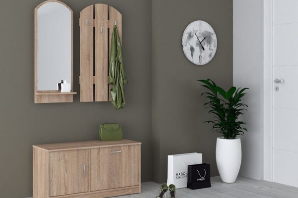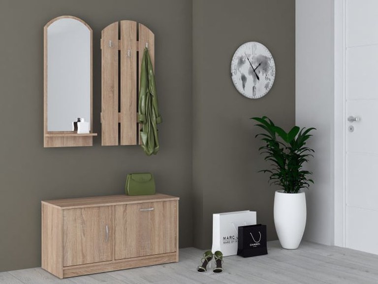 Cuierul este o soluție modernă și practică pentru hol, prevăzut cu 3 agățători, poliță și oglindă, ideal pentru organizarea eficientă a spațiului de la intrare. Material Caracteristică Detalii Corp Front PAL melaminat Sonoma Material...