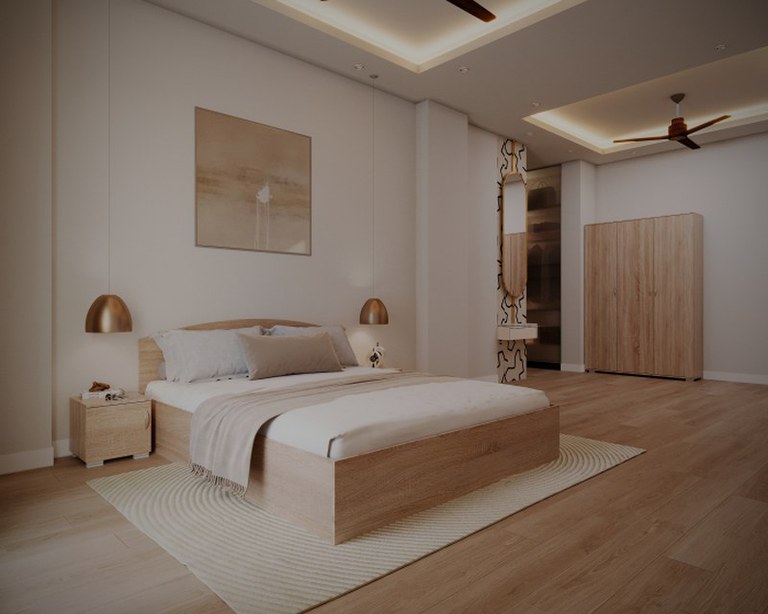 Material : Corp : PAL Melaminat Front : PAL Melaminat Dimensiuni Corpuri : Dulap 3 Usi cu rafturi si bara haine ( x 1 buc ): Lungime 135 x Adancime 50 x Inaltime 202cm; Pat 2 persoane ( x 1 buc ) : Lungime 165 x Adancime 204 x Inaltime 32 80cm....