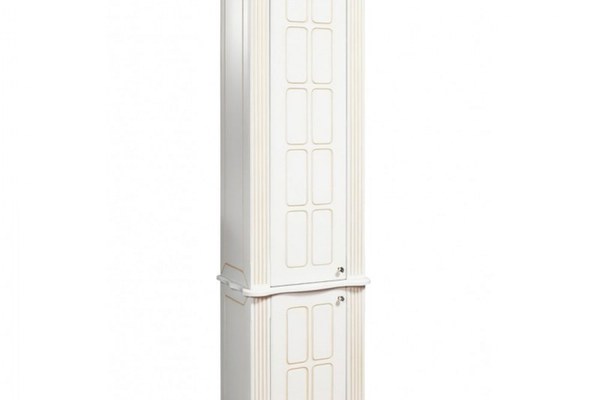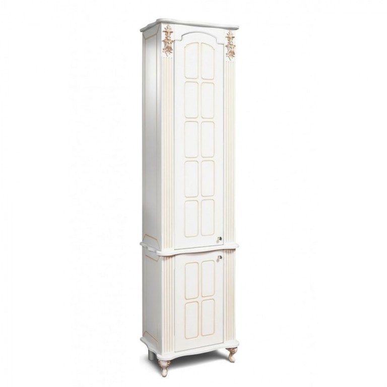 Material : Corp : PAL - Alb Aur Front : MDF - Alb Aur Dimensiuni Corpuri : Dulap: 50x190x33cm Caracteristici : 2 usi mecanism soft close Produsul se livreaza in pachet ( 3 colete ), cu schita de montaj si feroneria necesara pentru asamblare...