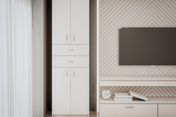 Dimensiuni : Lungime 60 x Adancime 37 x Inaltime 196cm Nuante Pal melaminat Alb Caracteristici: Dulapul este prevazut cu 4 rafturi pentru depozitare + 2 sertare. Produsul se livreaza in pachete , cu schita de montaj si feroneria necesara...