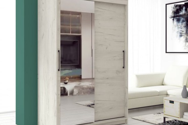 Dimensiuni: Lungime 130 x Adancime 60 x Inaltime 200cm Caracteristici : Dulapul este pervazut cu bara haine si rafturi pentru depozitare Usile sunt culisante Oglinda pe una din usi Sina culisanta din Aluminiu Profil Maner Aluminiu Produsul...