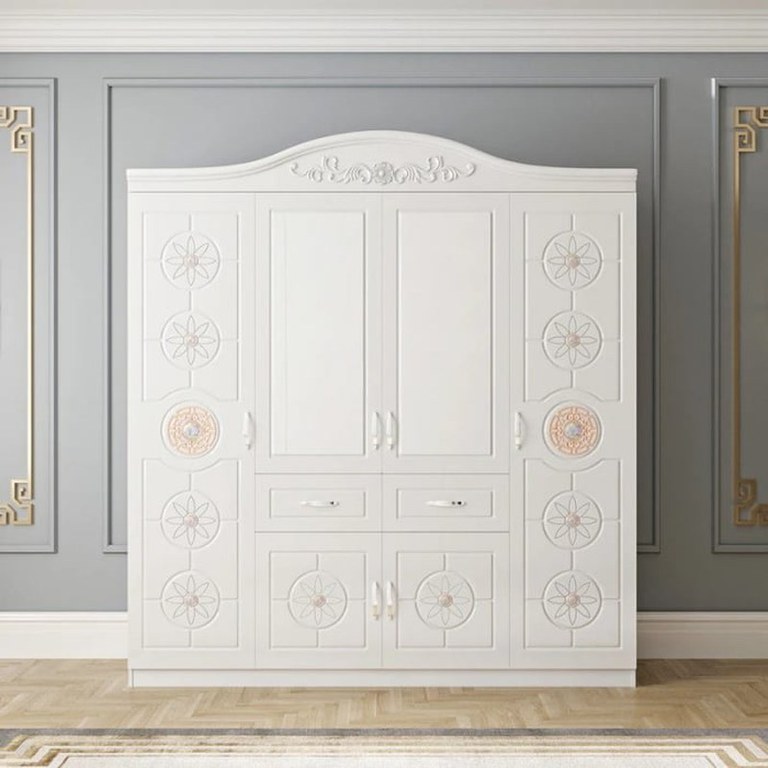 Nuante: Corp: Pal melaminat Alb Front: MDF Dimensiuni: Lungime 200 x Adancime 50 x Inaltime 200cm Caracteristici: Rafturi pentru depozitare Bara haine Sertare cu sistem glisare metalic Produsul se livreaza in pachete, cu schita de montaj...