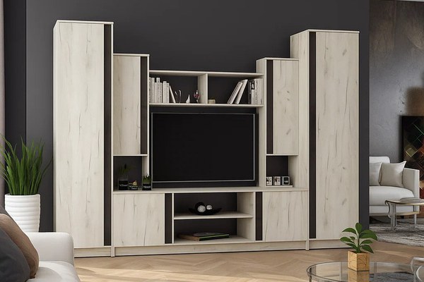 Material: Corp: Pal melaminat Stejar K001 Front: Pal melaminat Stejar K001+Oxide Steel Dimensiuni Corpuri: Dulap Bara Haine: Lungime 50 x Adancime 52 x Inaltime 201cm Dulap Rafturi: Lungime 50 x Adancime 52 x Inaltime 201cm Corp Inferior TV ( x1 buc ): Lungime...