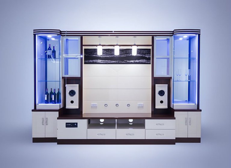 Material: Corp: MDF 16mm Front: MDF vopsit Dimensiuni: Lungime 315 x Adancime 40 x Inaltime 220cm Caracteristici: Spoturi cu led Boxe Player cu bluetooth si usb Polite din sticla Usi din sticla Produsul se livreaza in pachete, necesita...