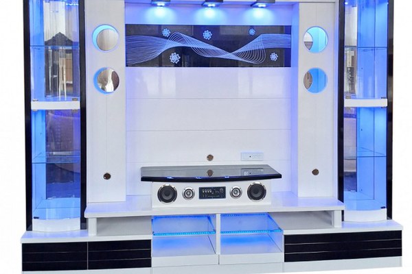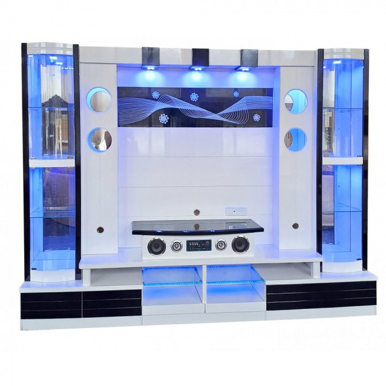 Material : Corp :-MDF 16mm Front :- MDF vopsit Dimensiuni: Lungime - 290 x Adancime - 40 x Inaltime 220 - cm Spatiu TV Lungime - 140 x Inaltime - 100 cm Caracteristici: Spoturi cu led Player cu bluetooth si usb Polite din sticla...
