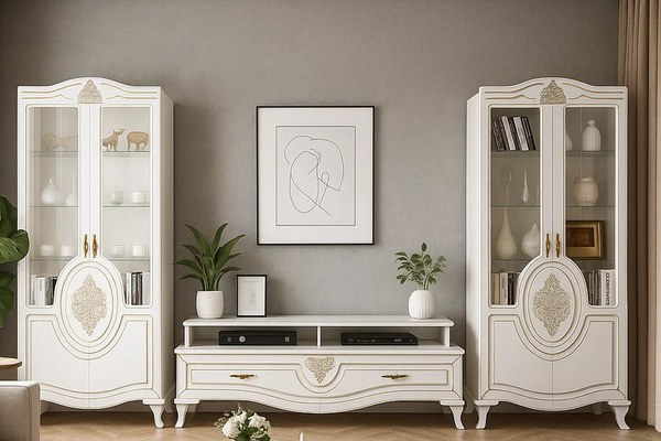 Material : Corp: Pal melaminat Alb Front: MDF Alb Dimensiuni Corpuri : Vitrina: Lungime 102 x Adancime 46 x Inaltime 184cm Comoda TV ( x1 buc ): Lungime 142 x Adancime 46 x Inaltime 51cm Spatiu TV: 142 x 100 cm Caracteristici : Front...