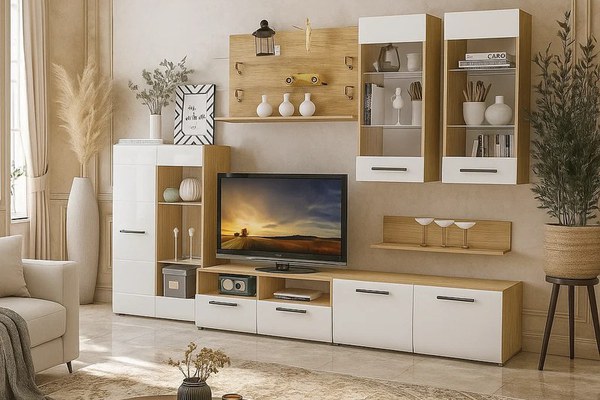 Living Nensi 3 Stejar Auriu Alb 280x47x200 cm