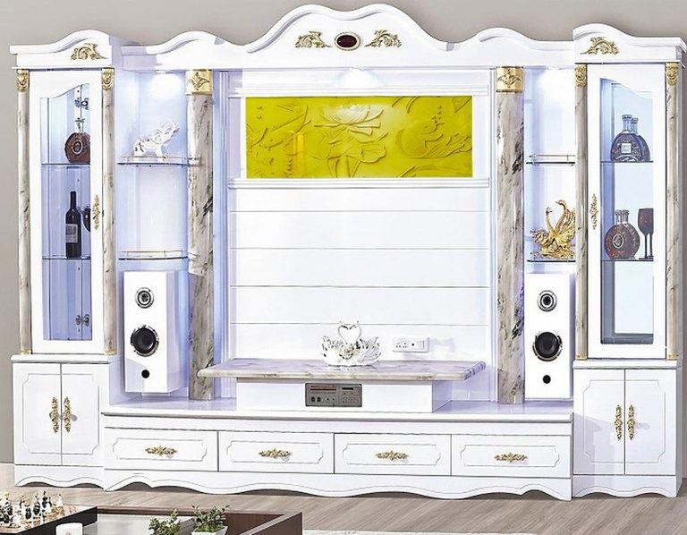 Living Royal, cu design modern și finisaj alb, dotat cu funcții multimedia integrate, ideal pentru un living elegant și bine organizat. Setul oferă spații generoase de depozitare și un plus de funcționalitate prin iluminarea LED și sistemul...