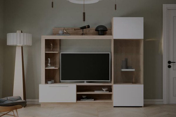 Material : Corp : Pal melaminat Sonoma Front : Pal melaminat Sonoma+Alb Dimensiuni: Lungime 204 x Adancime 35 x Inaltime 177cm Spatiu TV : 120 x 95 cm Caracteristici : Polite Produsul se livreaza in pachete, cu schita de montaj si feroneria...