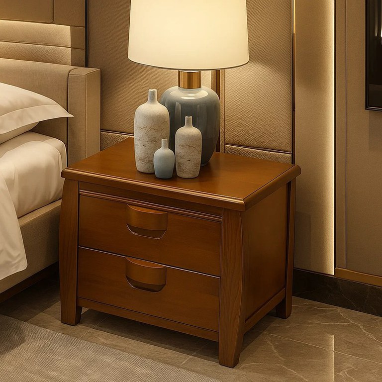 Material : Corp: Lemn Front: Lemn +MDF (Capac din Lemn+MDF) Dimensiuni : Lungime 50 x Adancime 40 x Inaltime 52cm; Caracteristici : doua sertare Produsul se livreaza in pachet, cu schita de montaj si feroneria necesara pentru asamblare....