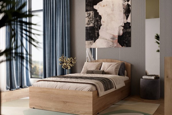 Material: Pal melaminat Sonoma Dimensiuni: Lungime 125 x Adancime 204 x Inaltime 32cm ( Inaltime tablie mare - 80cm ) Pat pentru saltea 120 x 200, Salteaua NU este inclusa! Caracteristici : Patul este prevazut in partea inferioara cu picioruse...