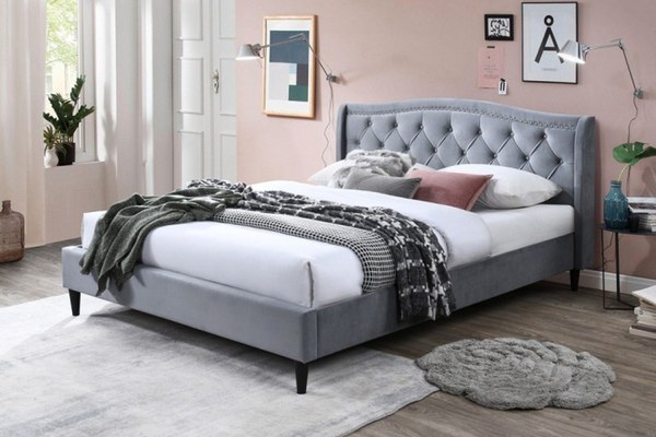 Pat tapitat Chelsea cu cadru din lemn cu somiera fixa Gri 140x200 cm