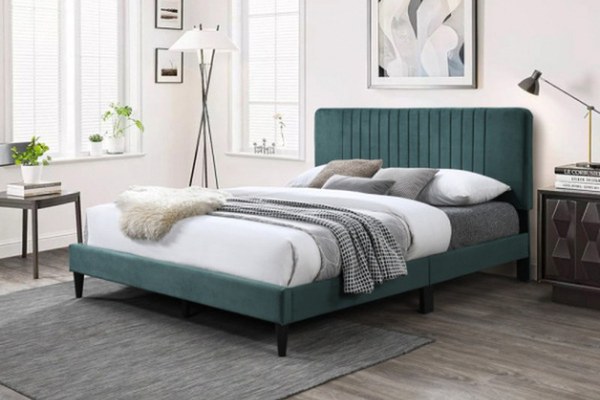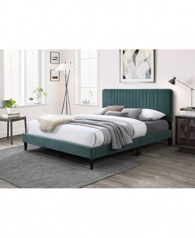 Pat tapitat Emerald cu catifea Verde cadru din lemn cu somiera fixa 140x200 cm