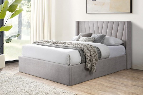 Pat tapitat Prestige 2 cu somiera metalica rabatabila si spatiu de depozitare Crem 160x200 cm