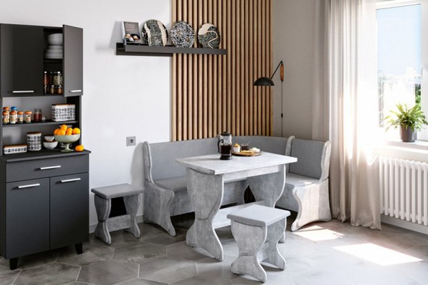Set colțar bucătărie Argentina Gri Ciment, cu design clasic și dimensiuni compacte, ideal pentru utilizarea eficientă a spațiului din bucătărie. Colțarul este reversibil și poate fi montat atât pe stânga, cât și pe dreapta, în funcție...