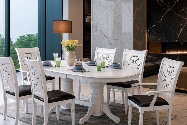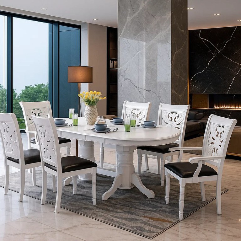 Set Masa RH7038EXT Cu 4 Scaune RH8043C Si 2 Scaune RH8043CA,155x100x77 cm, White