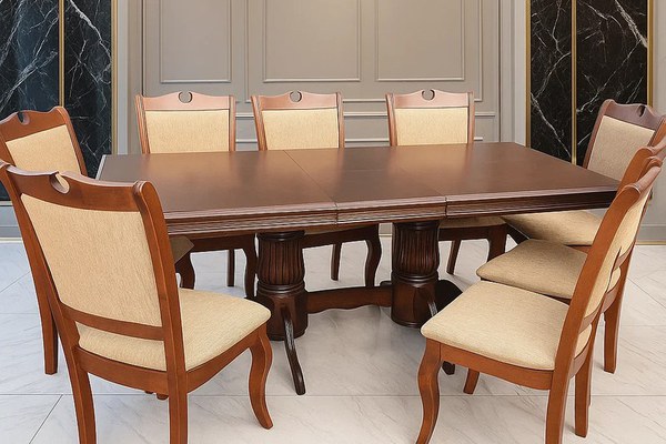 Set masa si 8 scaune tapitate, cu un design elegant, durabil si foarte usor de asortat in orice tip de living sau bucatarie. Indiferent ca e pozitionat in living sau in bucatarie, va fi, cu siguranta piesa centrala a acestei incaperi. Masa este dreptunghiulara,...