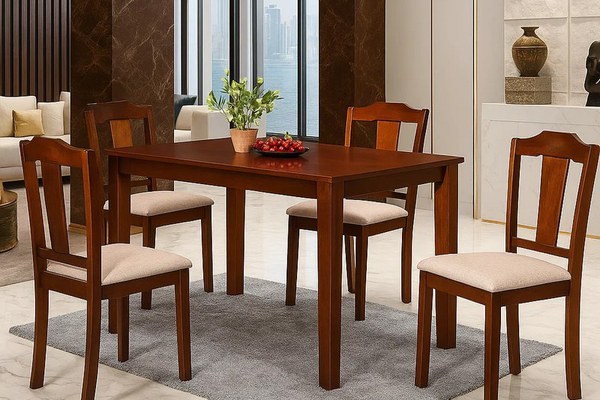 Set format din masa de lemn si 4 scaune tapitate, ideal pentru livingul sau bucataria dumneavoastra. Datorita materialului din care este confectionat, este o investitie de durata, avand rezistenta in timp. Cu un design ce nu se demodeaza usor, lemnul...