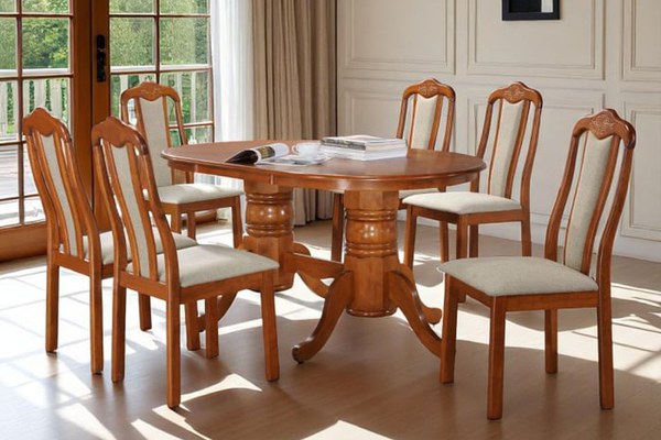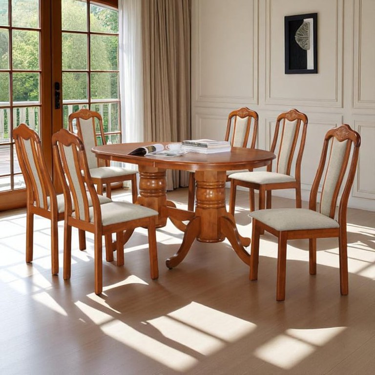 Set format din masa de lemn si 6 scaune tapitate, ideal pentru livingul sau bucataria dumneavoastra. Datorita materialului din care este confectionat, este o investitie de durata, avand rezistenta in timp. Cu un design ce nu se demodeaza usor, se integreaza...