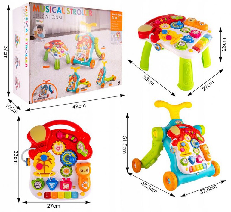 Antepremergator interactiv multifunctional 5 in 1, cu Pian, Sunete, Lumini, Labirint si angrenaje rotative, 48.5 x 37.5 x 51.5 cm