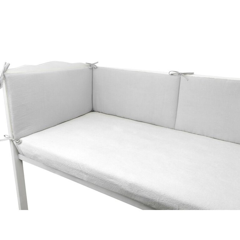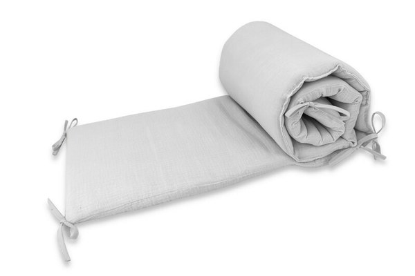 Aparatoare pentru patut Qmini Gray, din muselina dubla, 180x30 cm, cu panglici