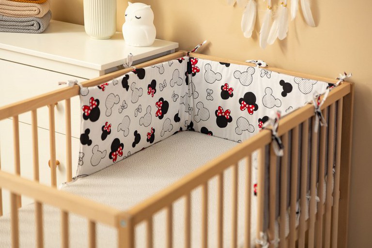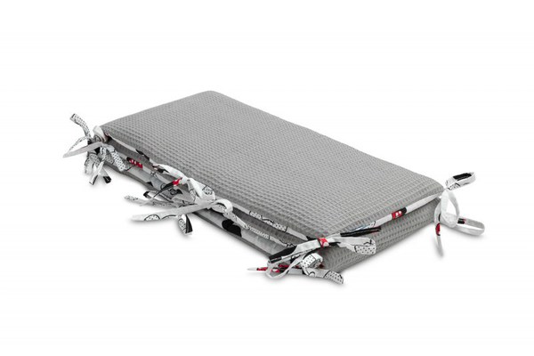 Aparatoare pentru patut Sensillo Waffle Mice Grey 180x30cm cu doua fete din bumbac, umplutura antialergica,prindere cu panglici