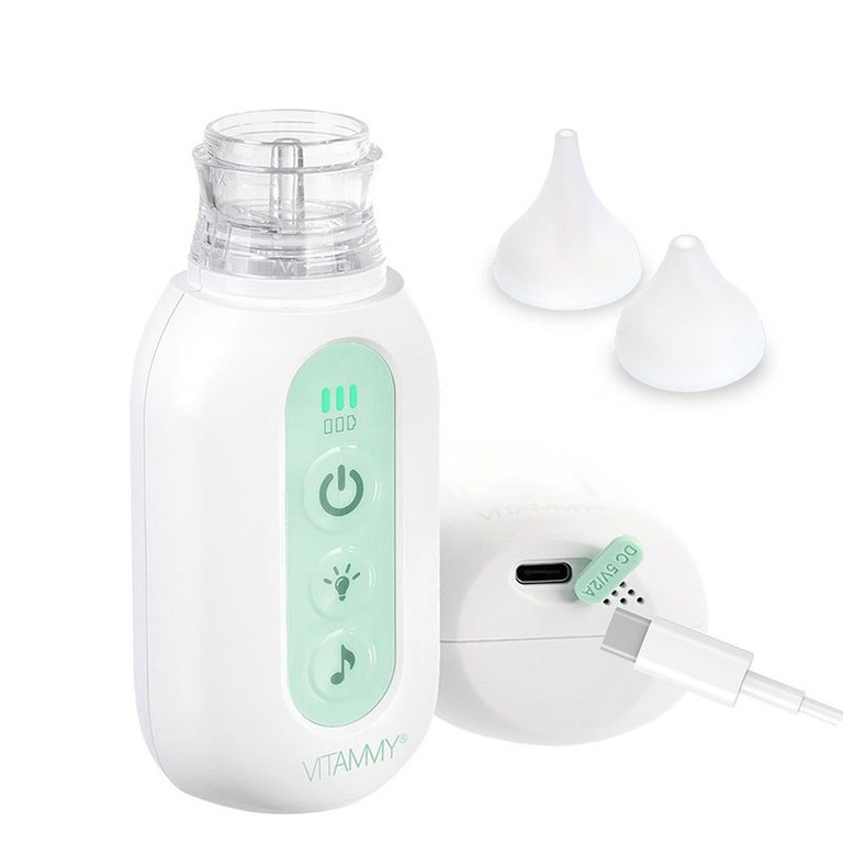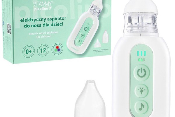 Aspirator nazal electric pentru copii din prima zi de viata Vitammy Picolino 7 cu 2 capete de schimb, 3 niveluri de putere, 12 melodii, iluminare colorata si incarcare USB-C