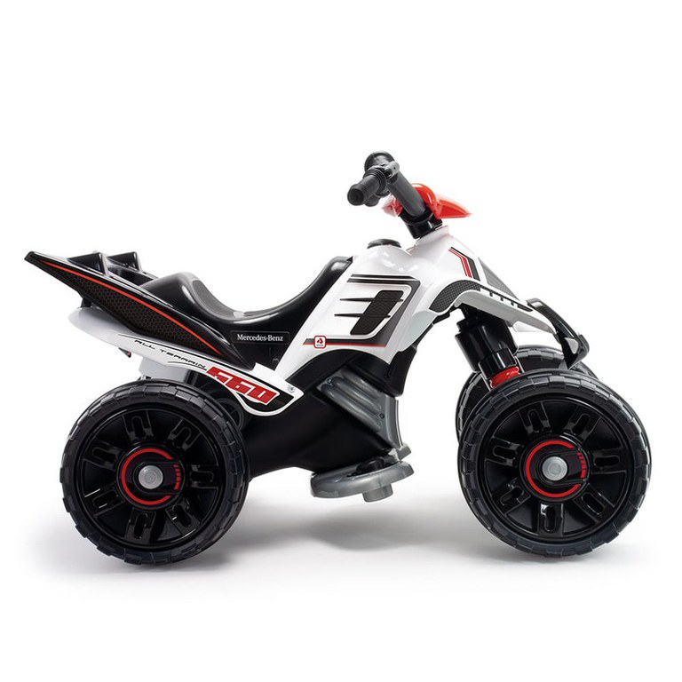 Acest ATV Mercedes 12V, licentiat oficial de renumitul brand, este vehiculul perfect pentru micii exploratori cu varste cuprinse intre 2 si 5 ani.Cu un design impresionant si finisaje de inalta calita