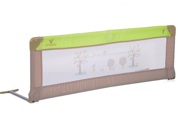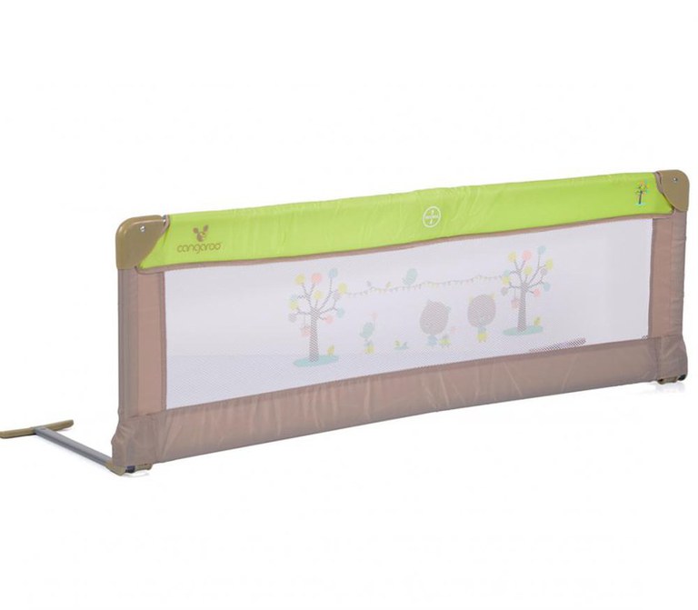 Bariera de protectie pentru pat copii Cangaroo Bed Rail Green, Rabatabila la 180 grade, Usor de montat, Cadru metalic, Utilizare pat parinti sau pat tineret, Dimensiune 130x43 cm