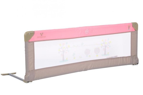 Bariera de protectie pentru pat copii Cangaroo Bed Rail Pink, Rabatabila la 180 grade, Usor de montat, Cadru metalic, Utilizare pat parinti sau pat tineret, Dimensiune 130x43 cm