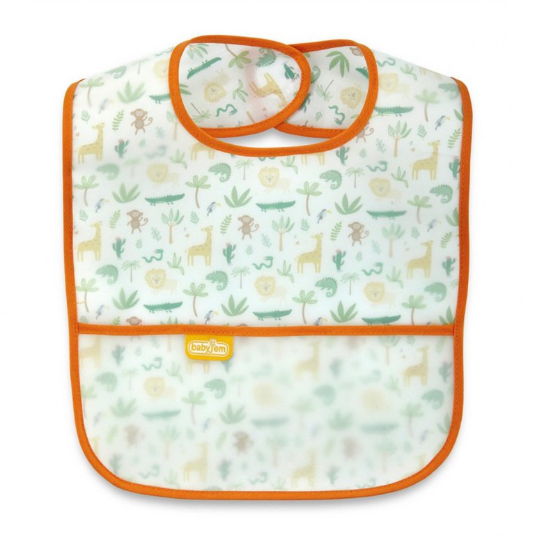 Baveta cu 2 fete si buzunar BabyJem 24x35 cm Portocaliu
