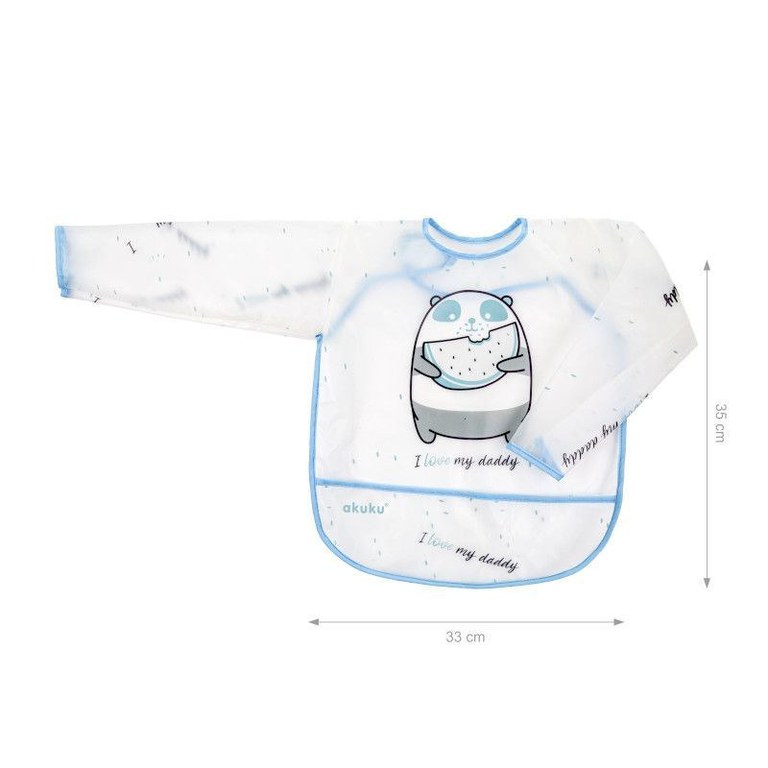 Baveta impermeabila cu maneci Akuku Bursuc Albastru 33x35 cm,inchidere cu velcro,material EVA,buzunar larg pentru captarea resturilor
