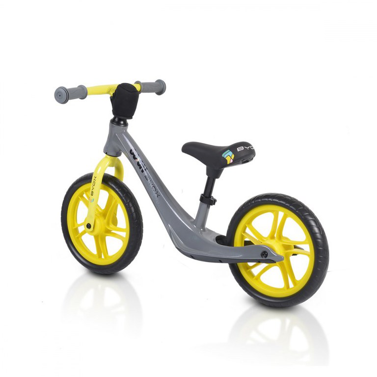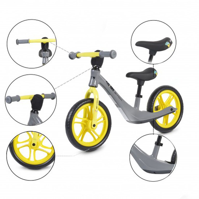 Bicicleta copii fara pedale Byox Go On grey 12 inch, roti din spuma EVA, scaun reglabil 32-41 cm, cadru din aliaj de magneziu, roti din spuma rezistenta, greutate maxima 30 kg