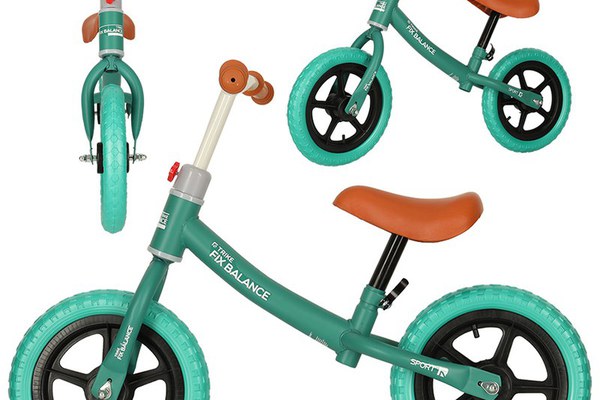 Bicicleta de echilibru fara pedale pentru copii, Ikonka, cu ghidonul si saua reglabile in inaltime, greutate redusa 1.8 kg, Trike Fix Balance Turcoaz