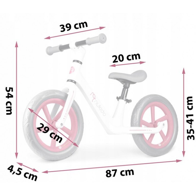 Bicicleta fara pedale pentru copii 87x39x54 cm, roti EVA, Light Flee Nukido Roz-Alb