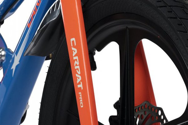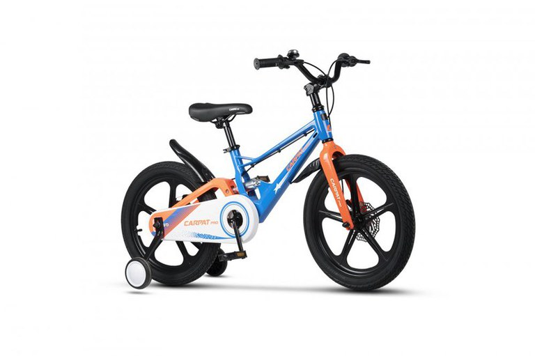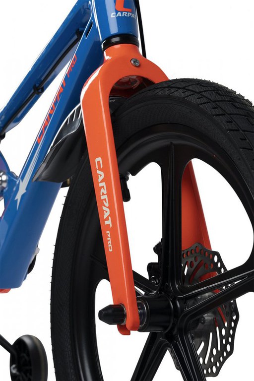 Bicicleta pentru copii Carpat PRO C18144B 18 inch AlbastruPortocaliu 5-7 ani Cadru aluminiu cu Suspensie, Frana spate tambur, frana fata V-Brake, Aparatoare lant, Janta Magneziu, Aparatori noroi fataspate, Sonerie
