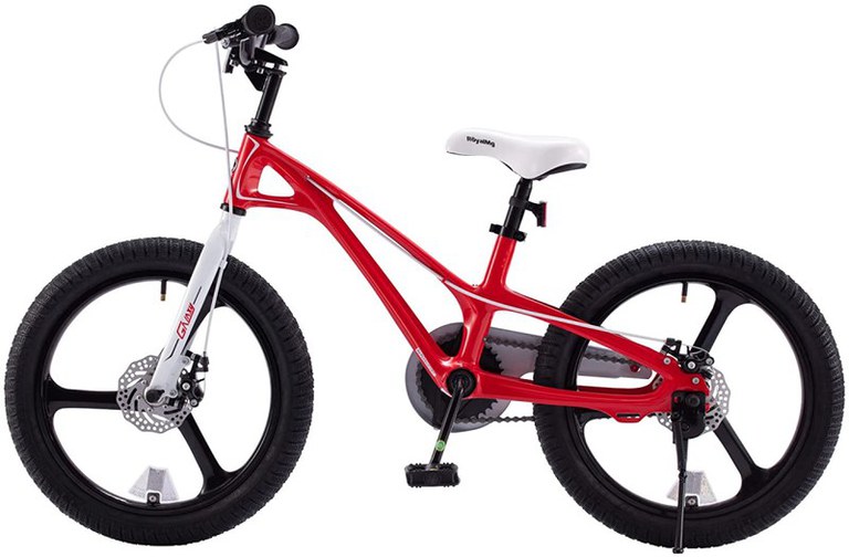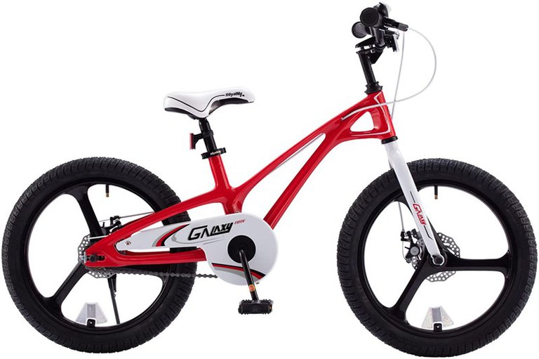 Bicicleta pentru copii Royal Baby Galaxy G1801C 18 inch RosuAlb 5-7 ani, Cadru Magneziu, Frane Disc, Roti Ajutatoare