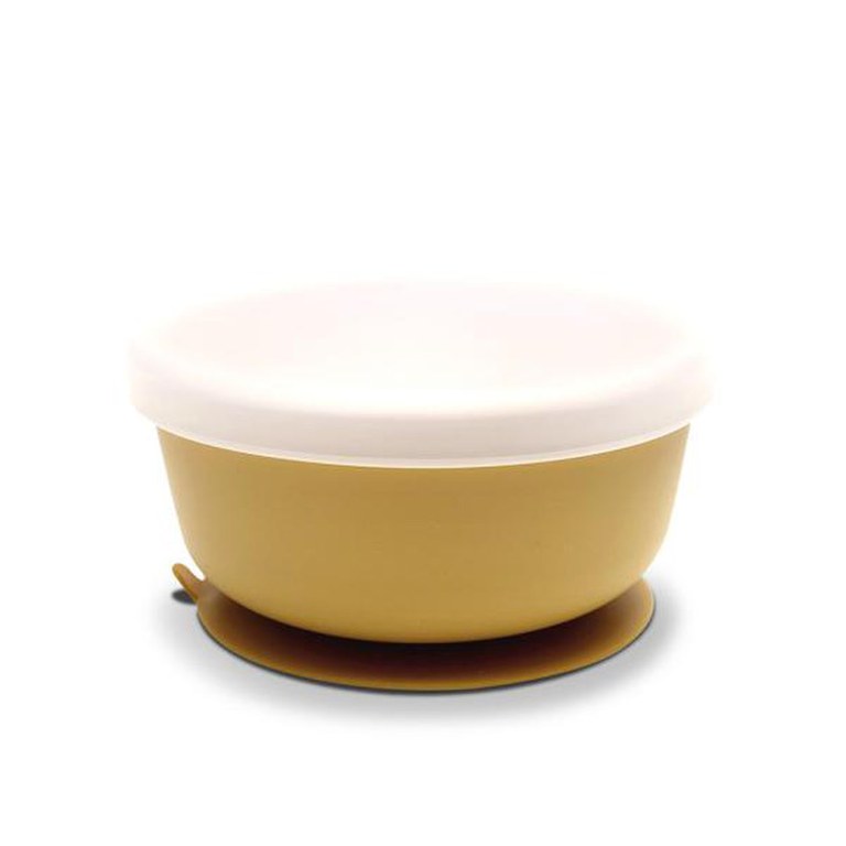 Bol de hranire cu capac din silicon natural si ventuza 6 luni+ Yellow