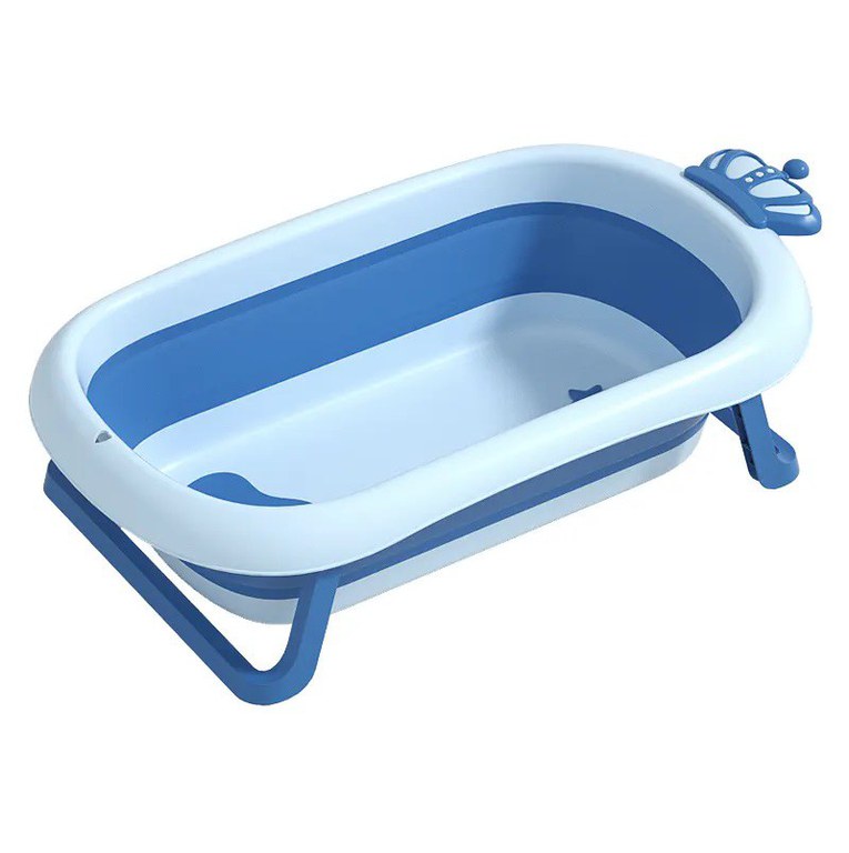 Cadita Little Mom King Blue pentru copii pliabila, cu dop pentru evacuare apa, baza antialunecare, structura piramidala, dimensiune 84 x 22 x 50 cm