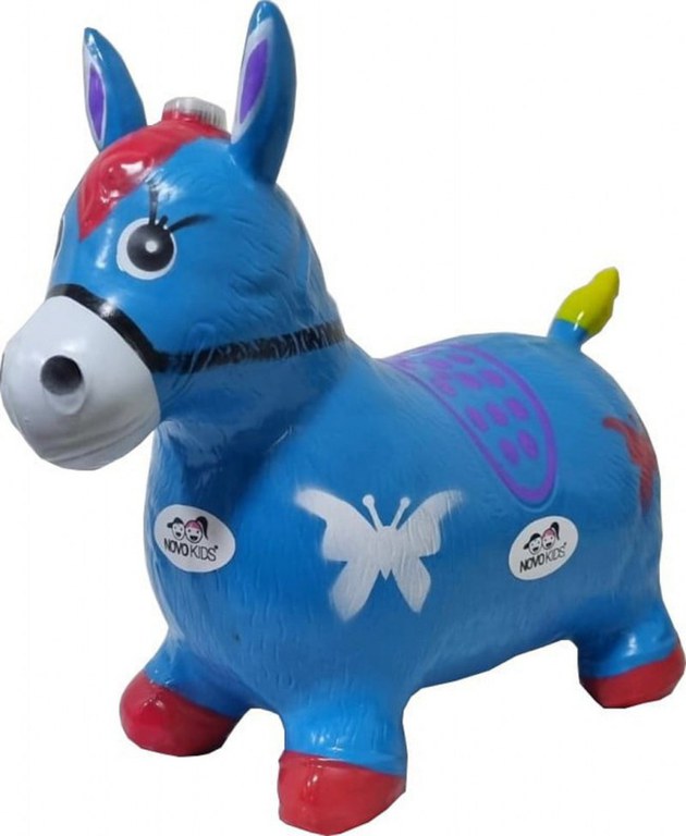 Calut de sarit gonflabil Novokids Jumping Donkey cu Sunete si lumini, Dimensiuni 55X50X25 cm, Pentru interior si exterior, Maxim 50 kg, Albastru